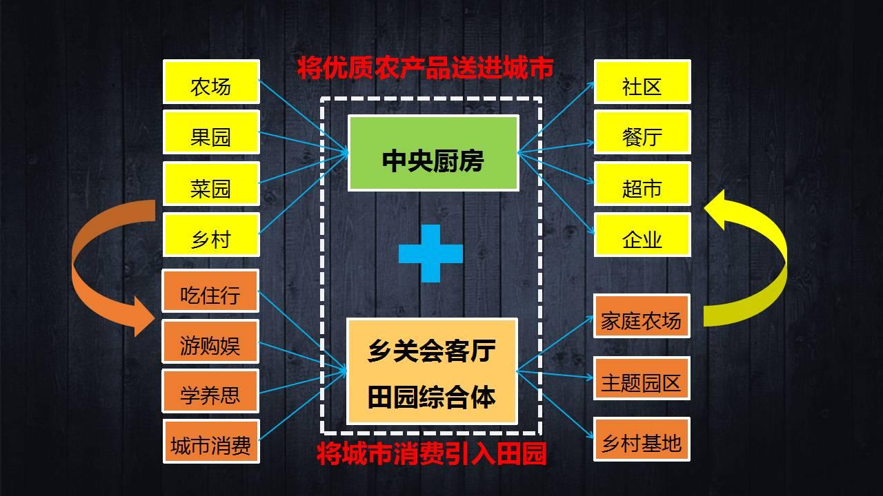 田园综合体·中央厨房的产业发展着重与通过打造“企业总部+中央厨房+田园综合体”模式,增加塑造产品的主导性功能,促进三产深度融合,完善盈利模式与盈利能力。